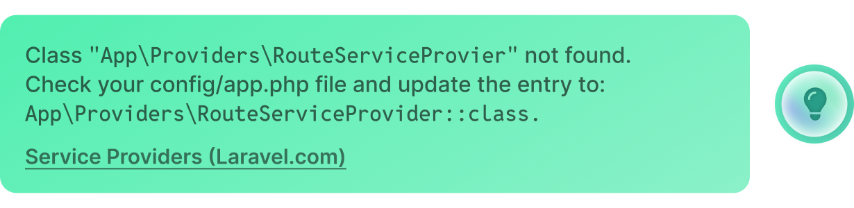 Get helpful explanations and links to documentation on Laravel, PHP and JavaScript errors.